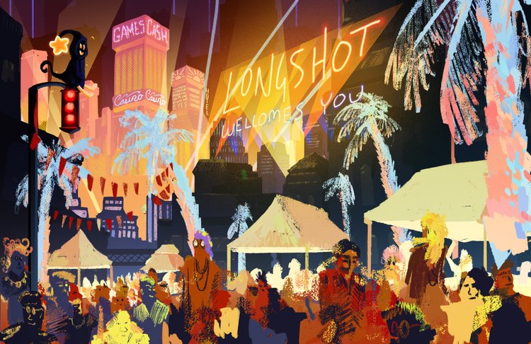 The world to the south mostly forgot about Taiga country, but the natives had made out well from the dye blooms. They were intrigued by the cultures that had touched their icy homes and used their newfound wealth to invest in the arts and sciences. Talented foreign workers seeking a new start traveled north, hearing whispers of a bohemia forming somewhere in Taiga country where they were free to experiment with more progressive ideas. Slowly, a town grew on the southern coastline and eventually it became Sweet Jazz City, the biggest hub of art and science in the world. Sweet Jazz's most distinct feature is its skyline: massive buildings multicolored blue and indigo with pigments from up north woven into the glass. The "iron aurora", a nod to the city's dye-mining origins.
